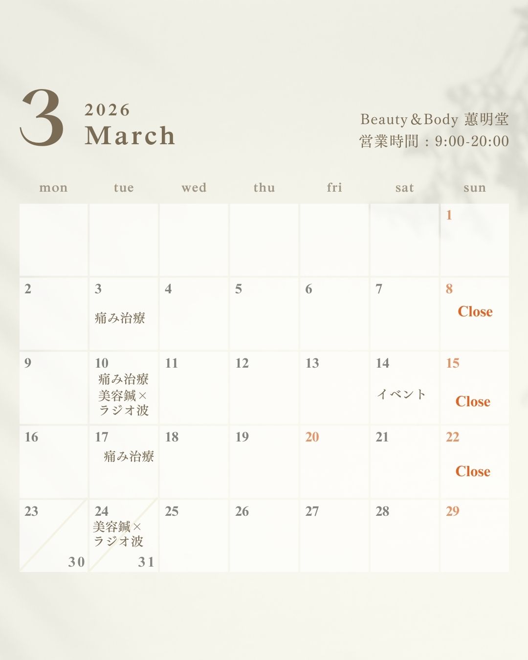 3月のイベント・ご案内