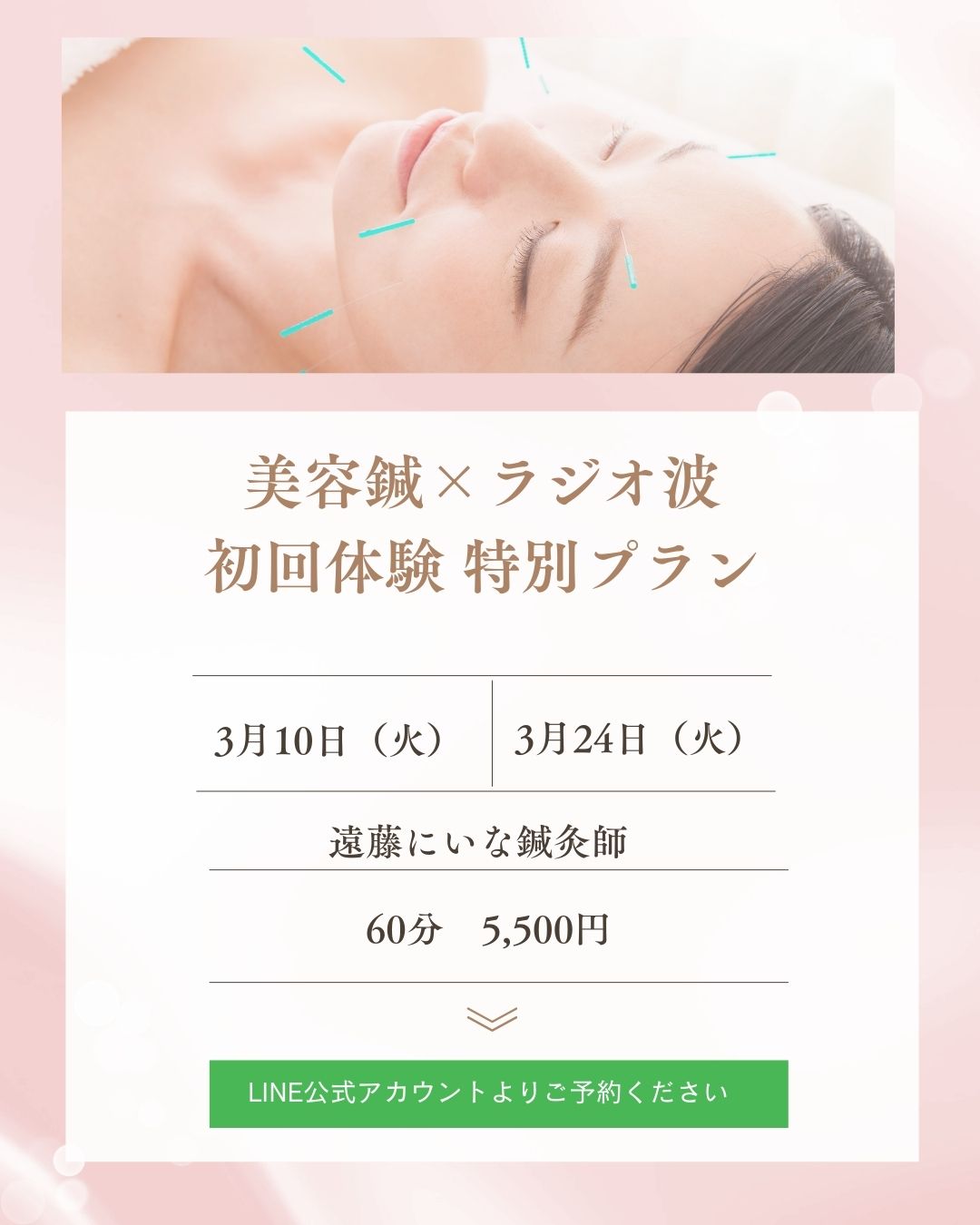 ◆隔週火曜日(10日・24日):美容鍼×ラジオ波(初回体験 特別プラン)